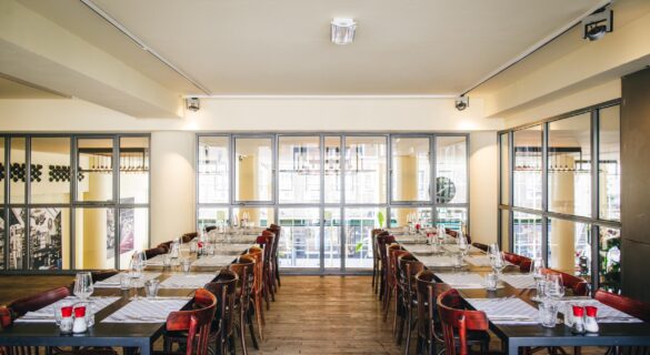 Met de hoge plafonds is er altijd rumoer en gezelligheid. Voor iets meer privacy zijn de aparte ruimtes op de eerste verdieping zeer geschikt. Een bijeenkomst met op de achtergrond het zachte geroezemoes van het restaurant beneden, geeft het samenkomen een informeel karakter.